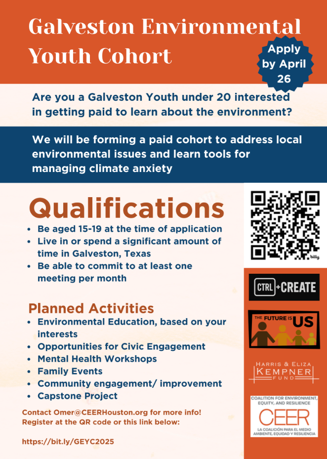 Starting June 2026, CTRL+CREATE is launching a paid summer program for youth who care about the environment and want to take real action in Galveston. This isn’t a lecture series.